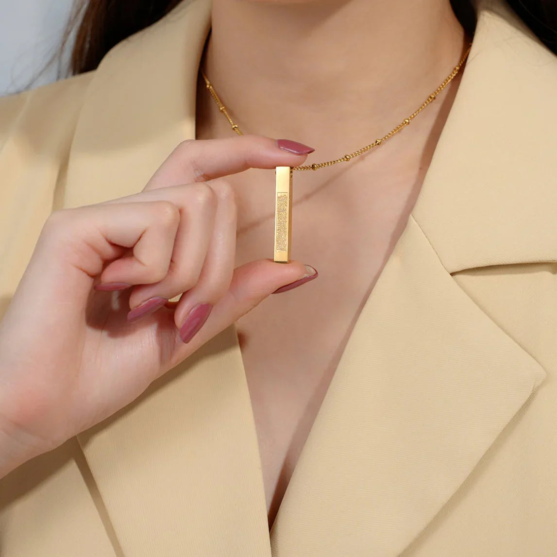 مصنوع من الفولاذ المقاوم للصدأ عالي الجودة أو بسلسلة من الجلد، مع تشطيب مصقول، مقاوم ومتّين. النقش واضح ومصمم ليبقى لفترة طويلة، ومريح للارتداء اليومي.